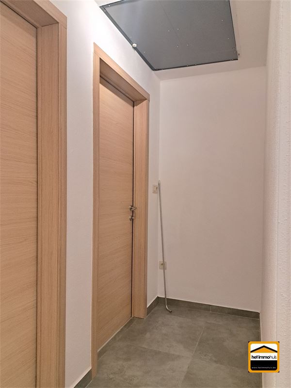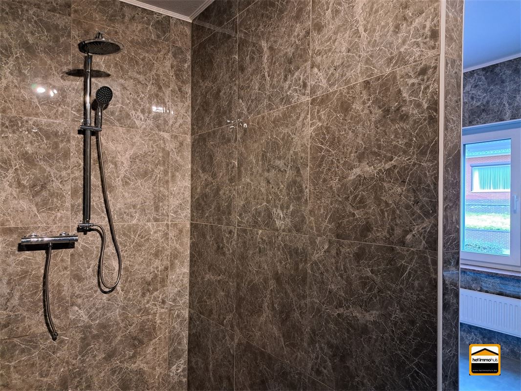 In de badkamer is er een zeer ruime inloopdouche voorzien alsook een enkele lavabo met meubel,