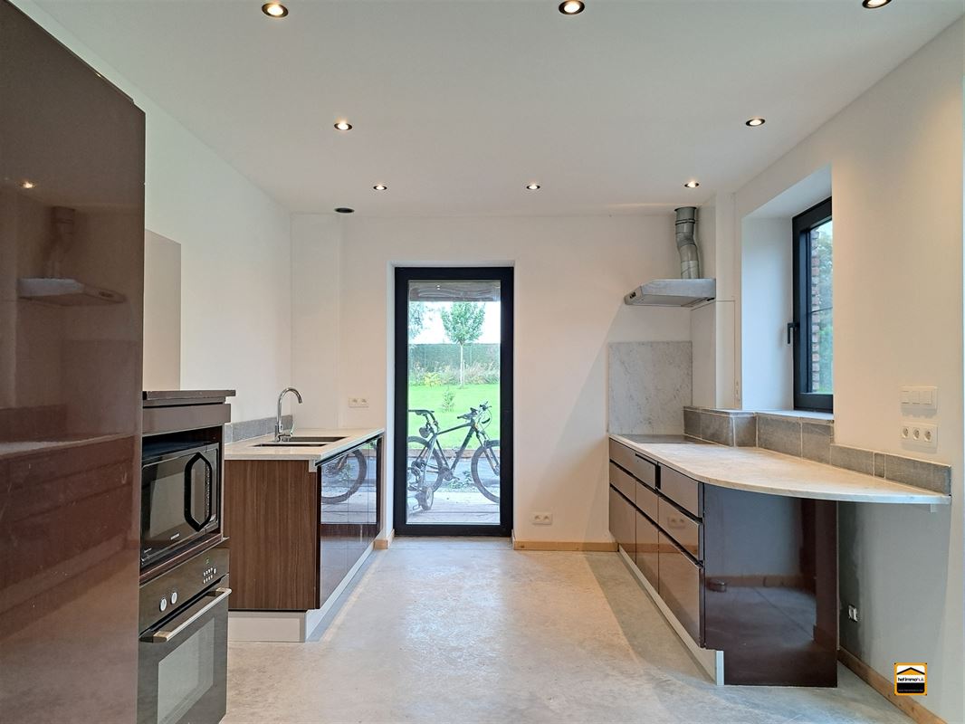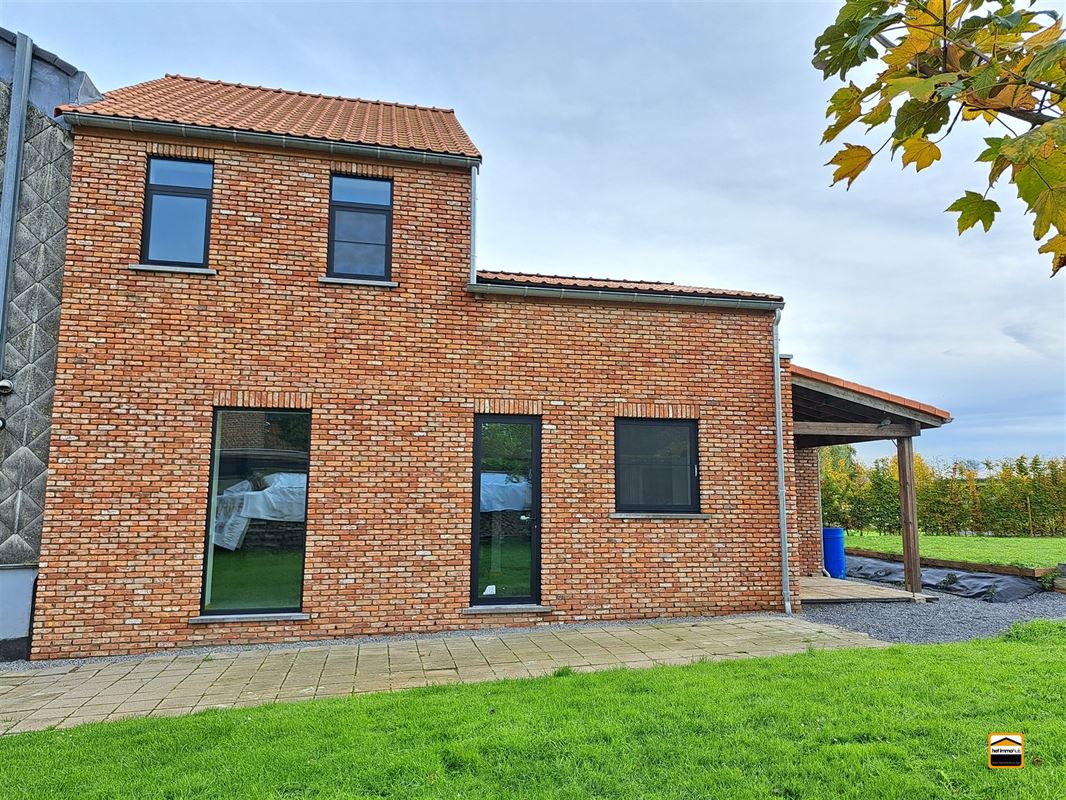 Zeer rustig gelegen kangoeroe nieuwbouwwoning met een bewoonbare oppervlakte van 210m². Via de inkomhal komt men terecht in een grote leefruimte met ruime open keuken. Via de leefruimte kan men het terras bereiken met de daarop volgend verharde tuin. Er is ook een praktisch tuinhuis aanwezig voor bijvoorbeeld h...