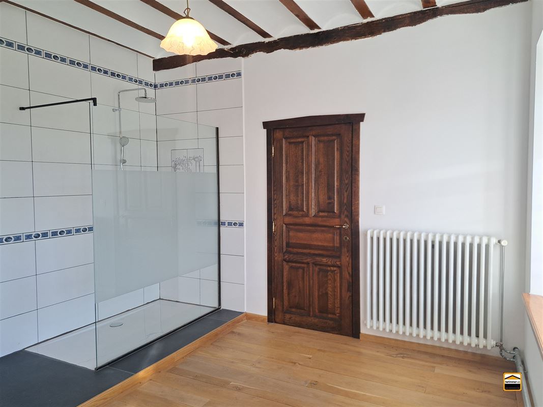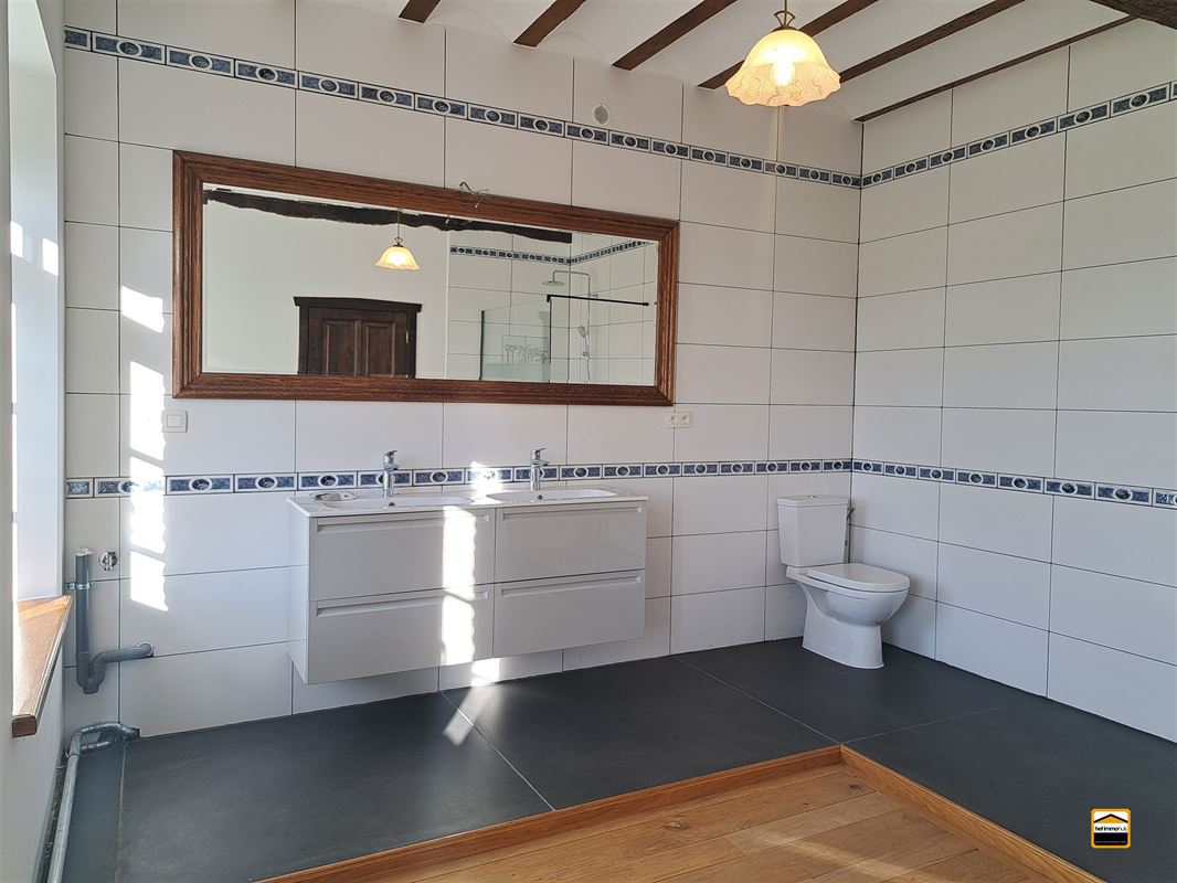 In de badkamer werd er een dubbele lavabo voorzien met meubel, een inloopdouche alsook een toilet.
