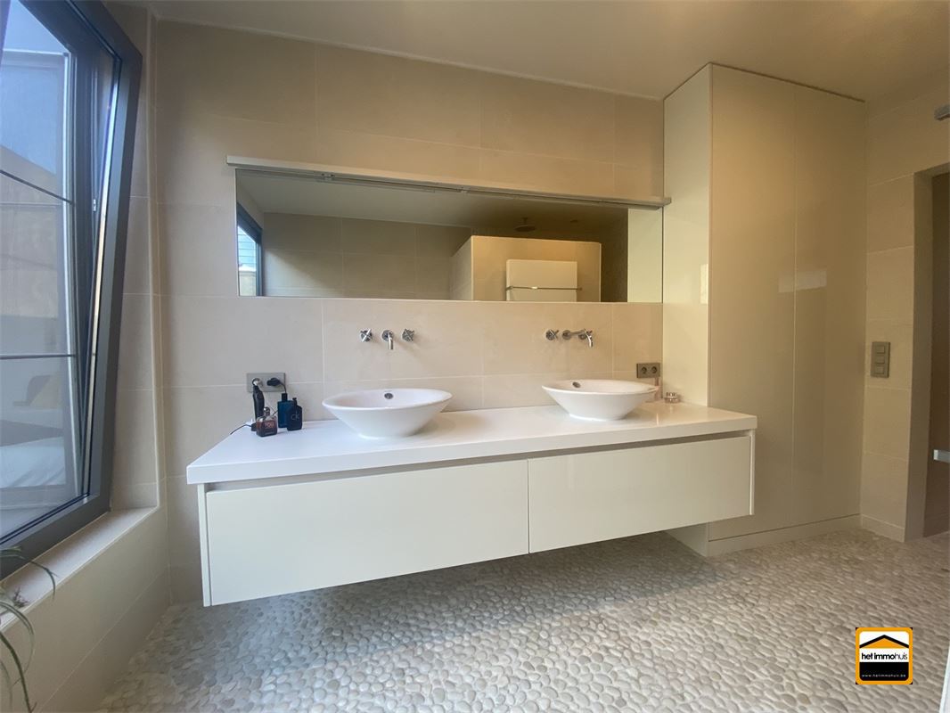 De woning beschikt over drie comfortabele slaapkamers, die dankzij een centrale patio een intiem en besloten karakter krijgen en tegelijk baden in het daglicht. Hoogwaardige materialen en een geslaagde combinatie van een strakke industriële look met warme houtaccenten creëren een stijlvolle en tijdloze sfeer doorheen de hele woning.