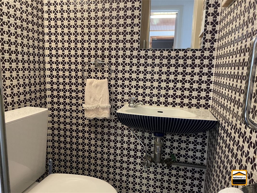 lavabo, toilet, berging met apart toilet, rechtstreekse toegang tot de loods met sectionaalpoort.