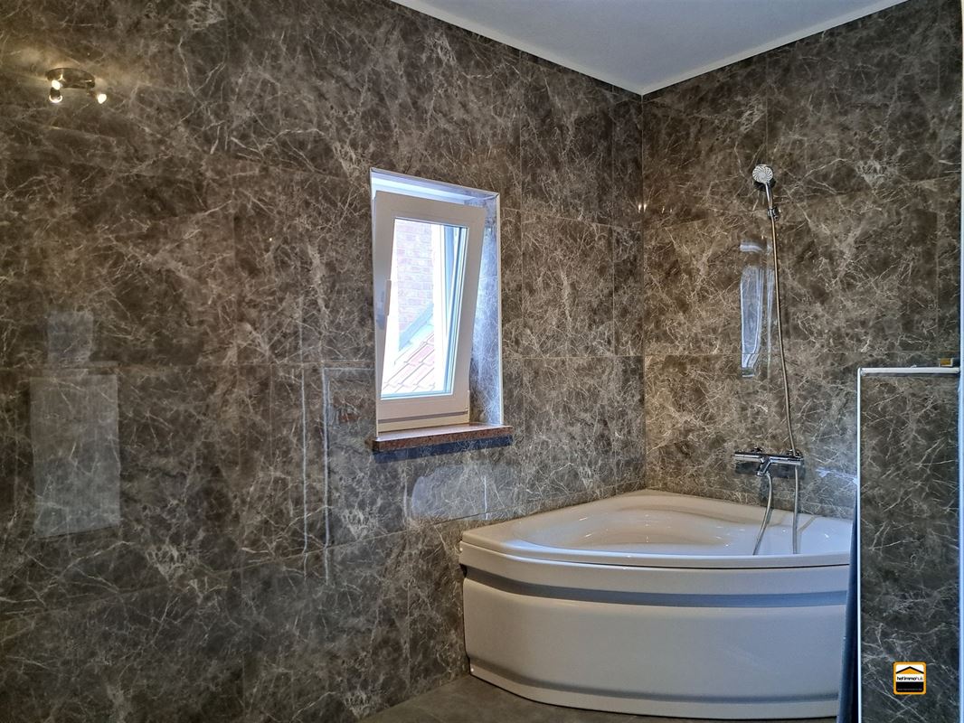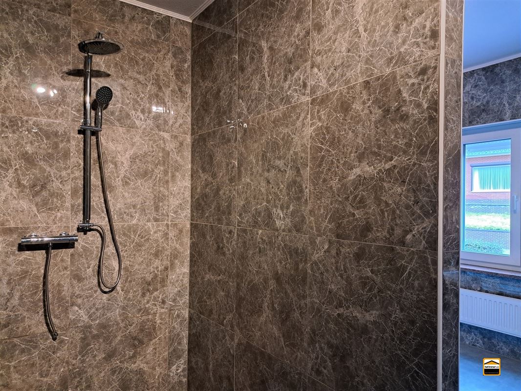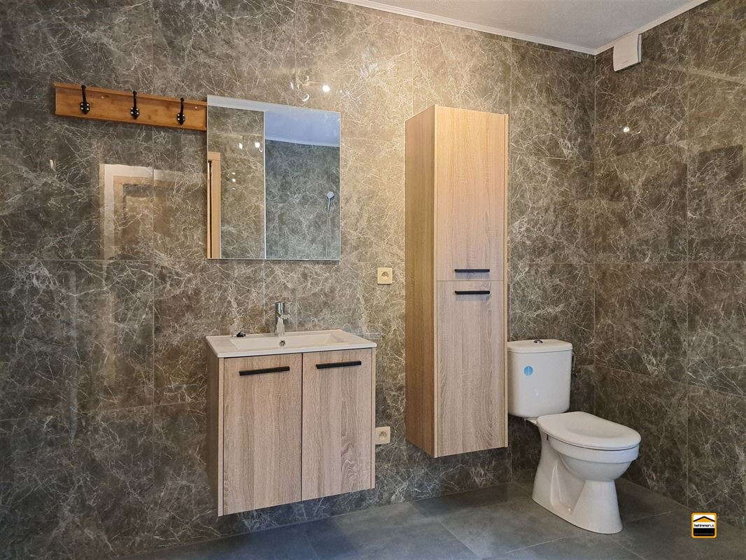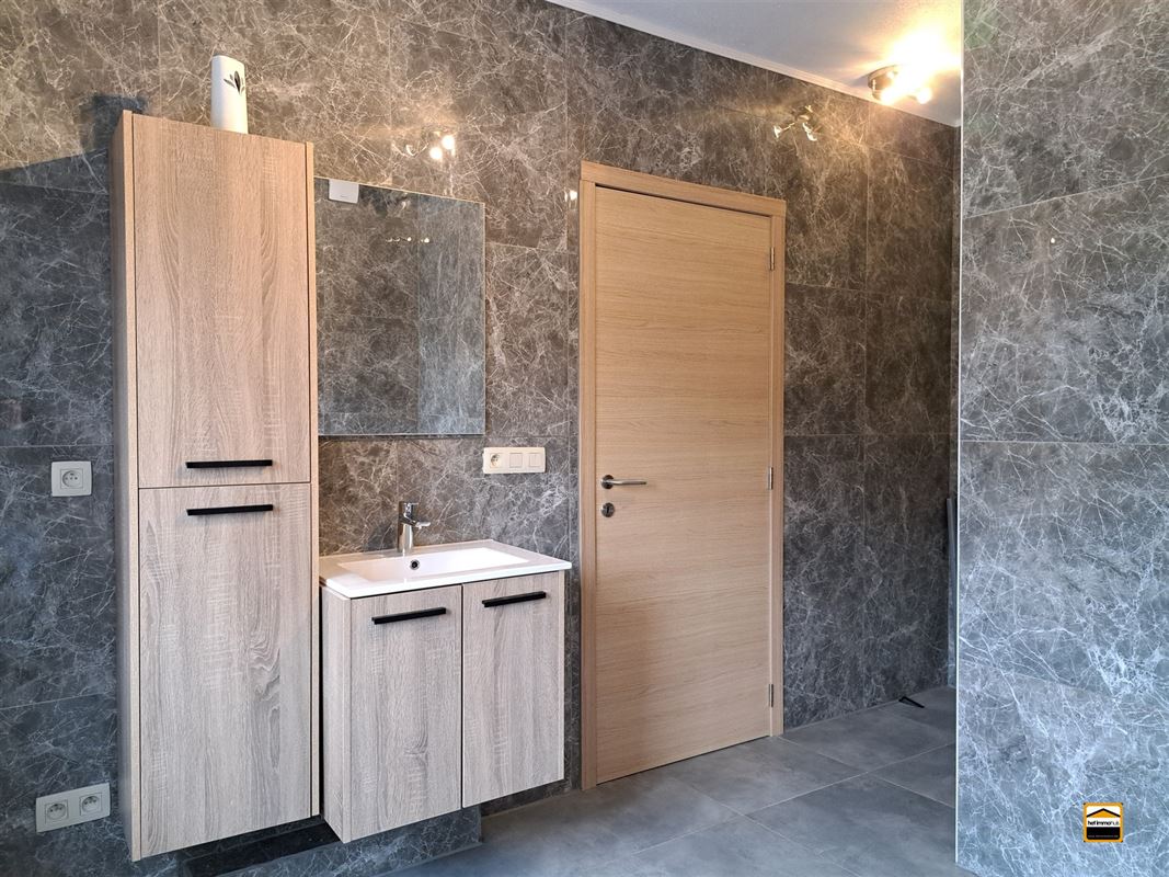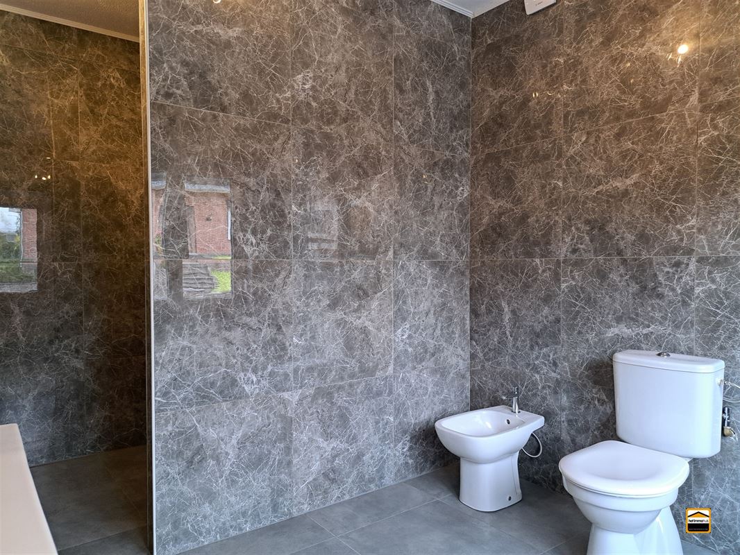 In de badkamer is er een zeer ruime inloopdouche voorzien alsook een enkele lavabo met meubel,