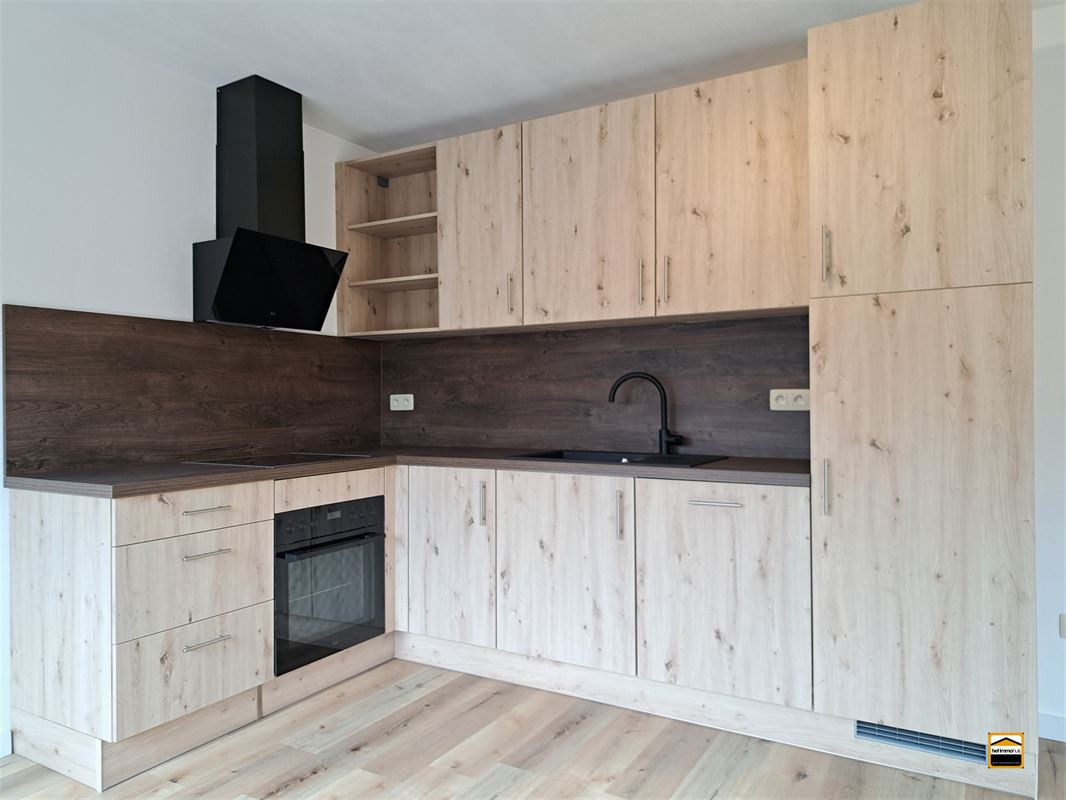 Op de eerste verdieping treft men via de nachthal een leefkeuken met zithoek,