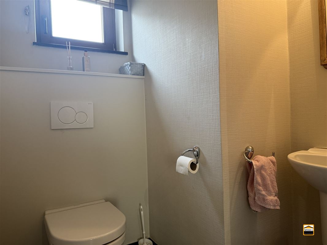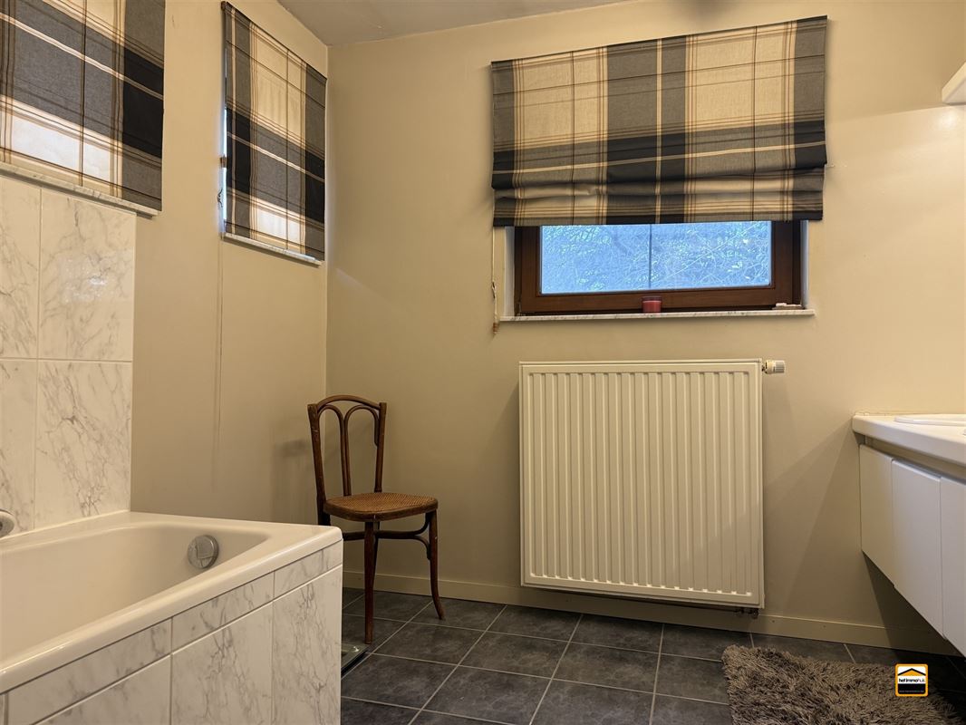 een badkamer met dubbele lavabo en bad. Apart toilet in de nachthal.