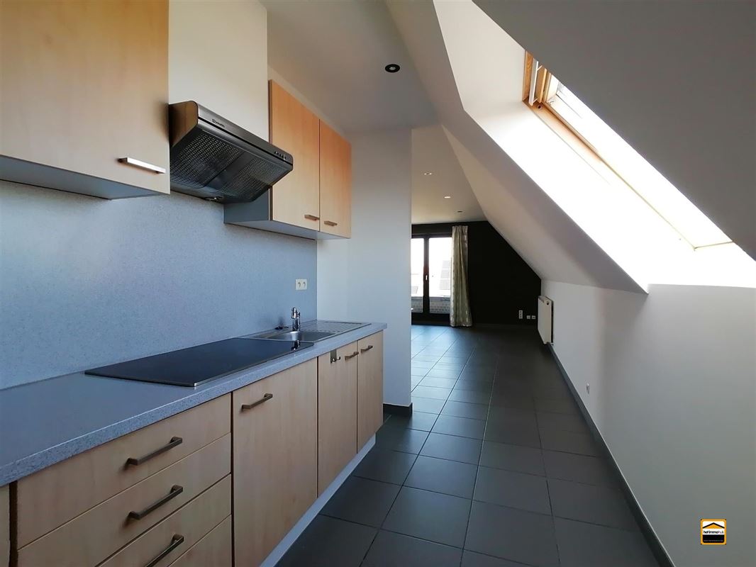 Dakappartement met inkomhal, leefruimte, keuken, slaapkamer, badkamer, berging en