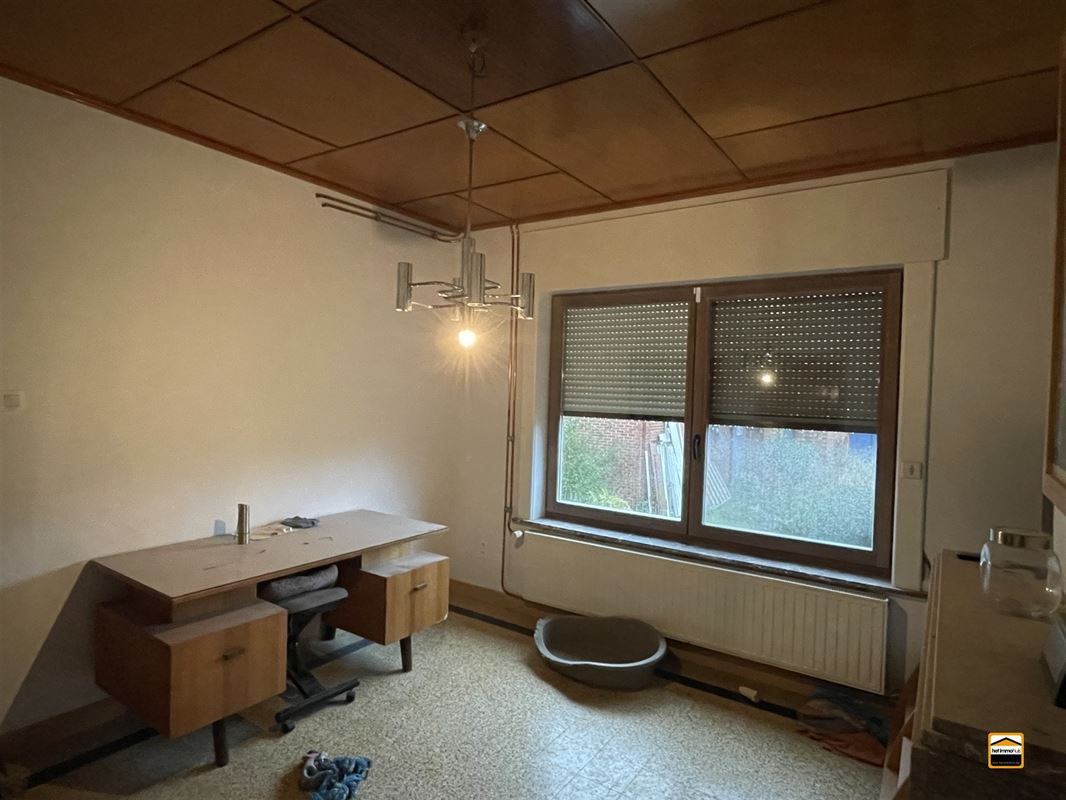 gelijkvloers: inkomhal , 3 kamers (af te werken), een ruime leefkeuken met grote raampartijen.